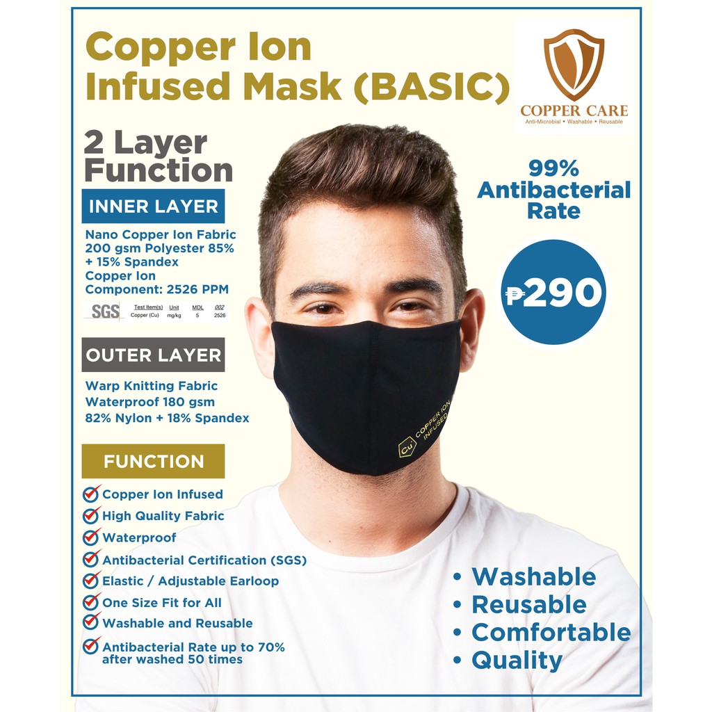 Get Copper Face Mask Ph US. The antimicrobial film face mask is reusable and washable. Washable reusable copper face mask.